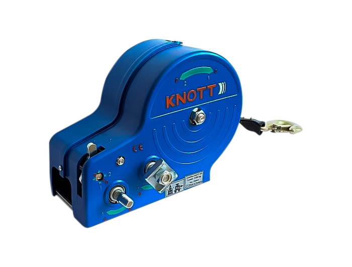 - Treuil remorque bateau1150 kg à sangle avec boîtier bleu, parfait pour remorques porte bateau et d'autres véhicules ou machines, produit par le fabricant renommé Knott.