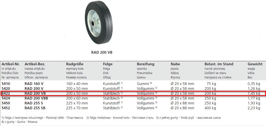 - Roue jockey - galet, fabriqué par Winterhoff constitue un élément constitutif du roue jockey. Enveloppe faite du caoutchouc de la plus haute qualité. Dimensions: 200x50 mm, largeur moyeu 58 mm, diamètre d'orifice 20mm.