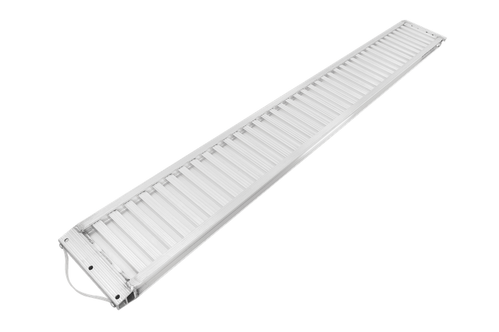- Rampe de chargement aluminium de 250 cm. Destinée pour les remorques et semi-remorques. Avec rebords et rainures.
