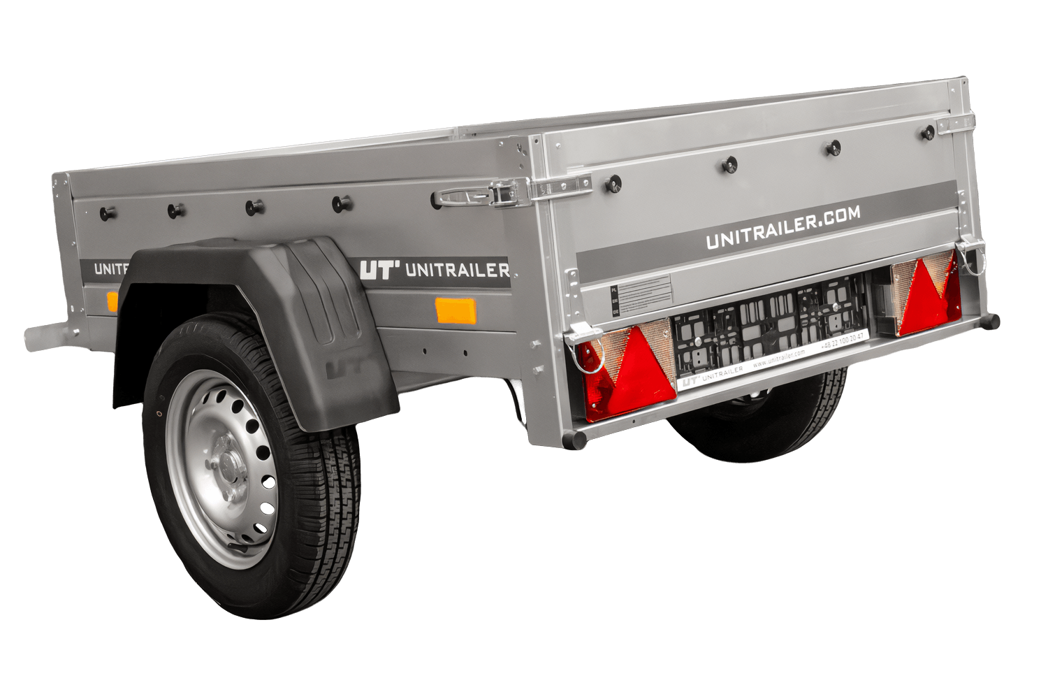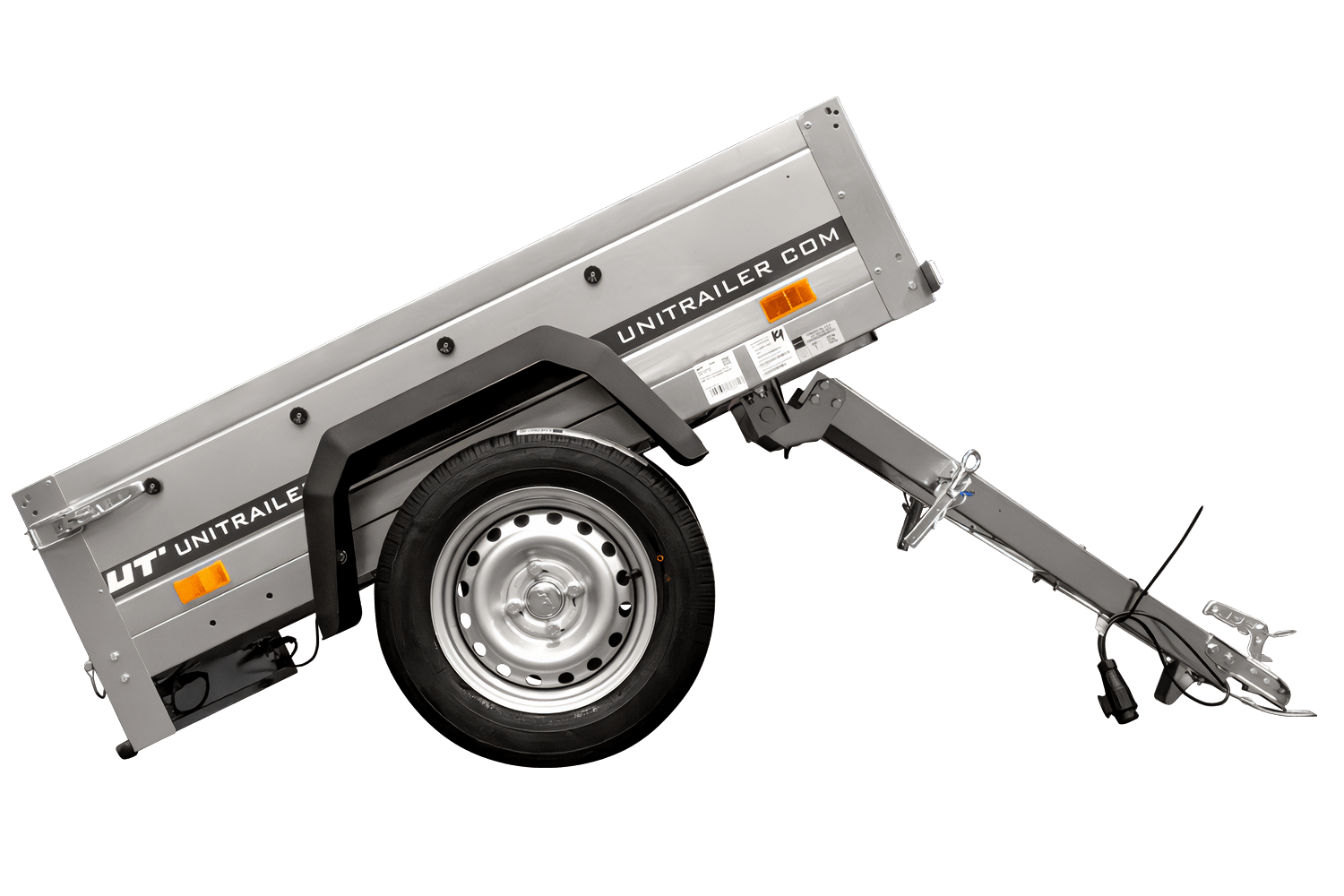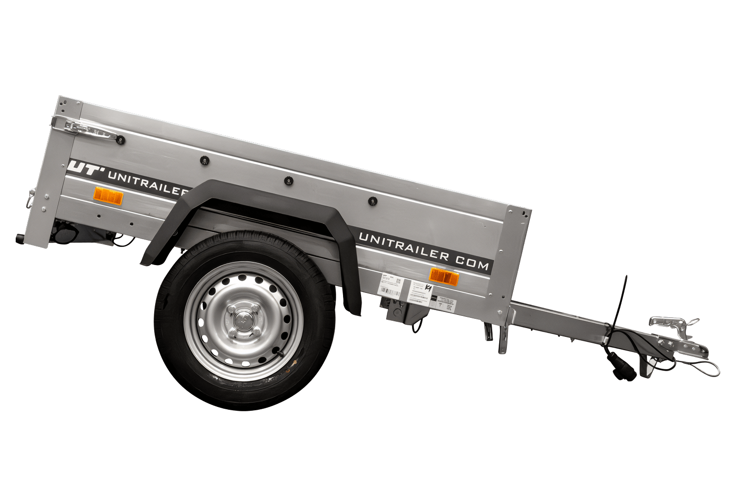Remorque un essieu 150x106 UNITRAILER GARDEN 150 KIPP avec côtés, ridelles supplementaires et capot en aluminium