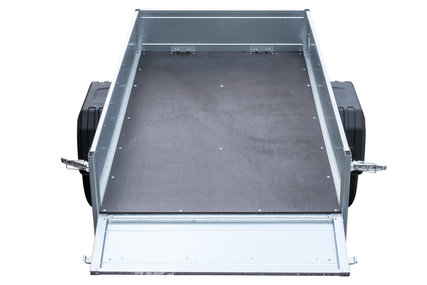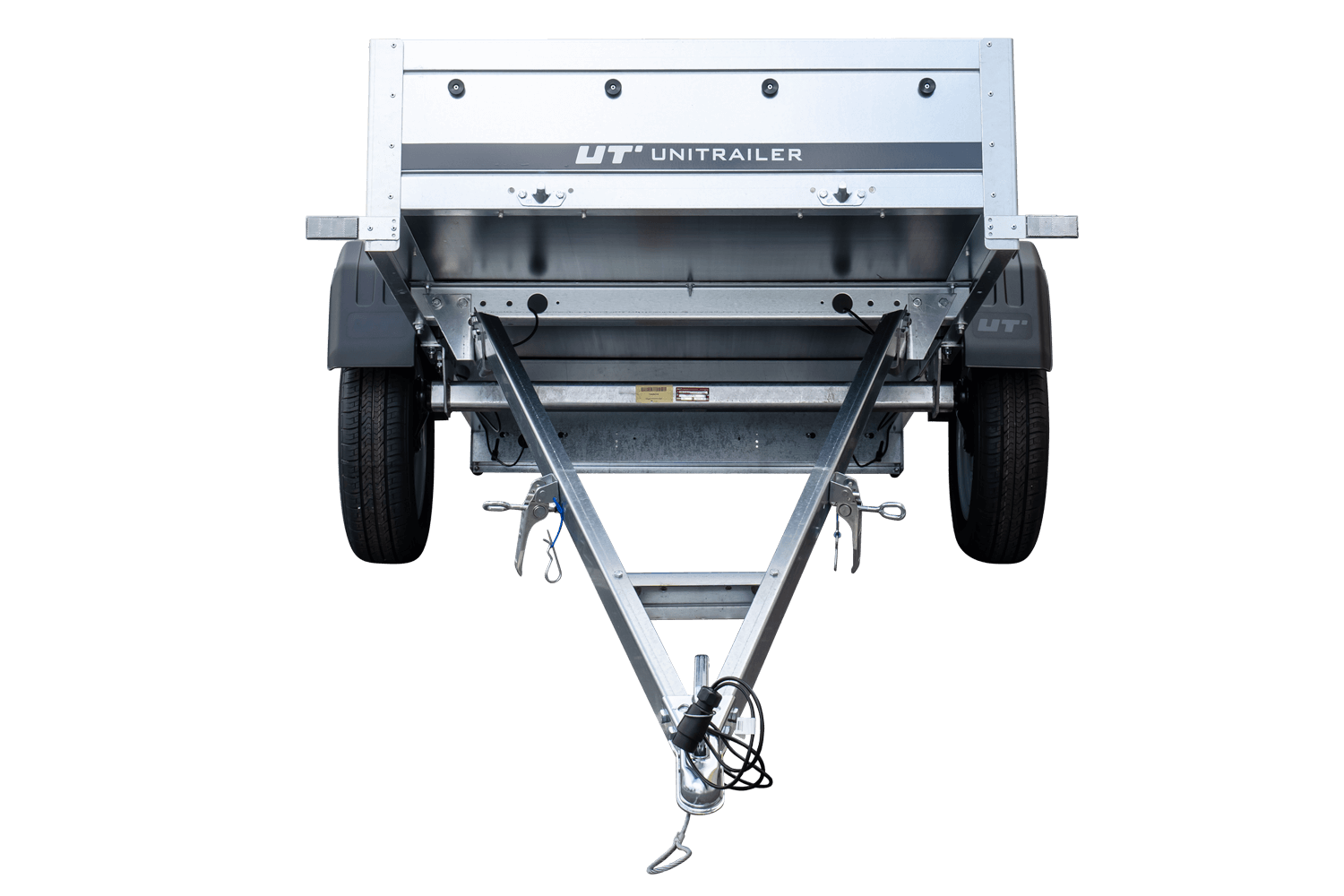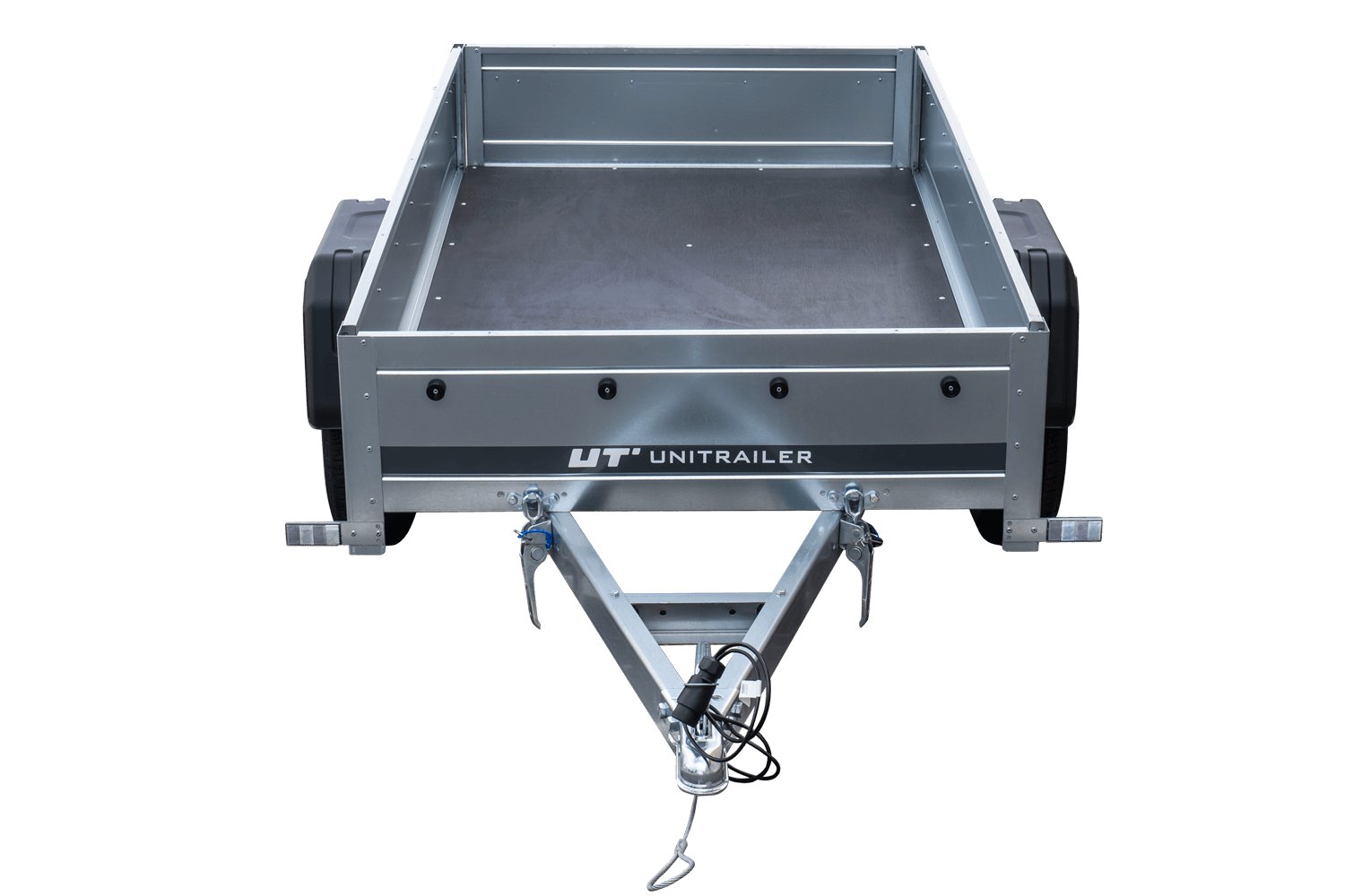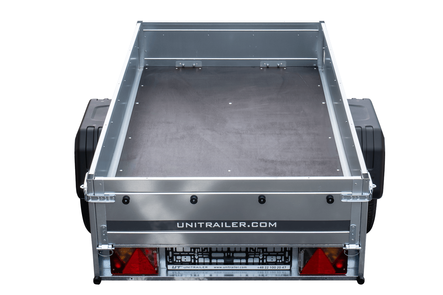 Remorque de loisirs avec la surface de transport de 200x106 cm. Garden Trailer 200 KIPP est l'un des modèles les plus populaires d'UNITRAILER qui dispose d'une suspension basée sur l'essieu simple non-freiné AL-KO ou KNOTT. Timon pliable en V (rabattable) et ridelle arrière ouvrante. Remorque en tôle d'acier galvanisé avec 2 ans de garantie. Roues 155/70 R13 avec jantes d'acier, qui amortissent des routes inégales et permettent une conduite confortable. Garde-boues très durables faits en matières plastiques résistantes à la corrosion.