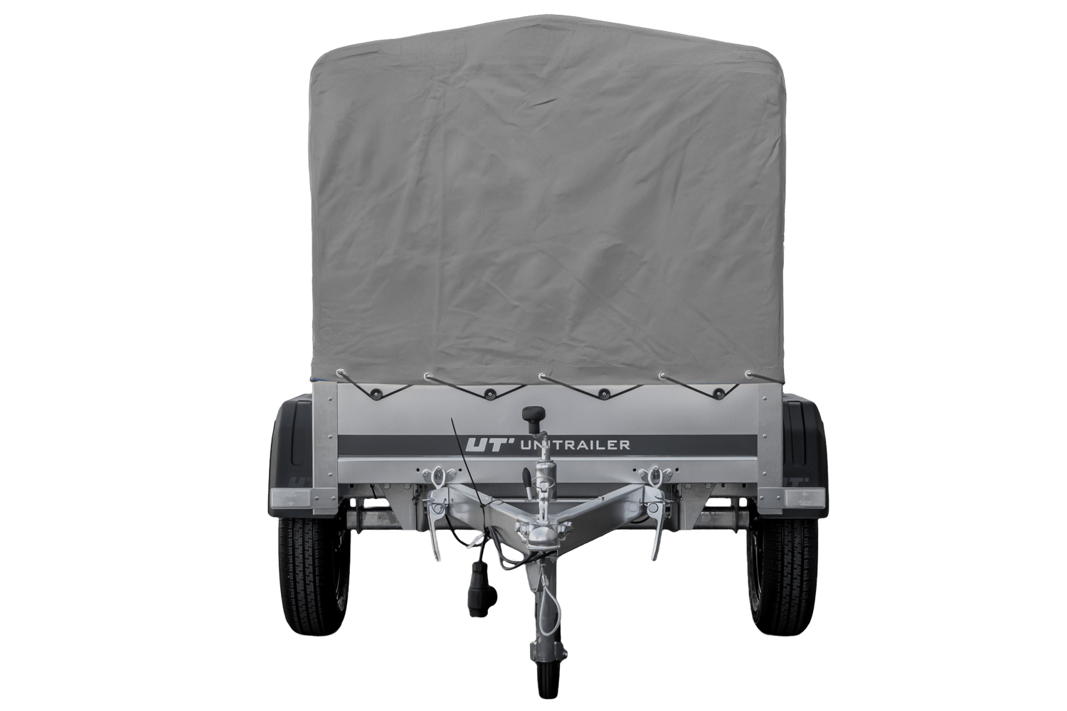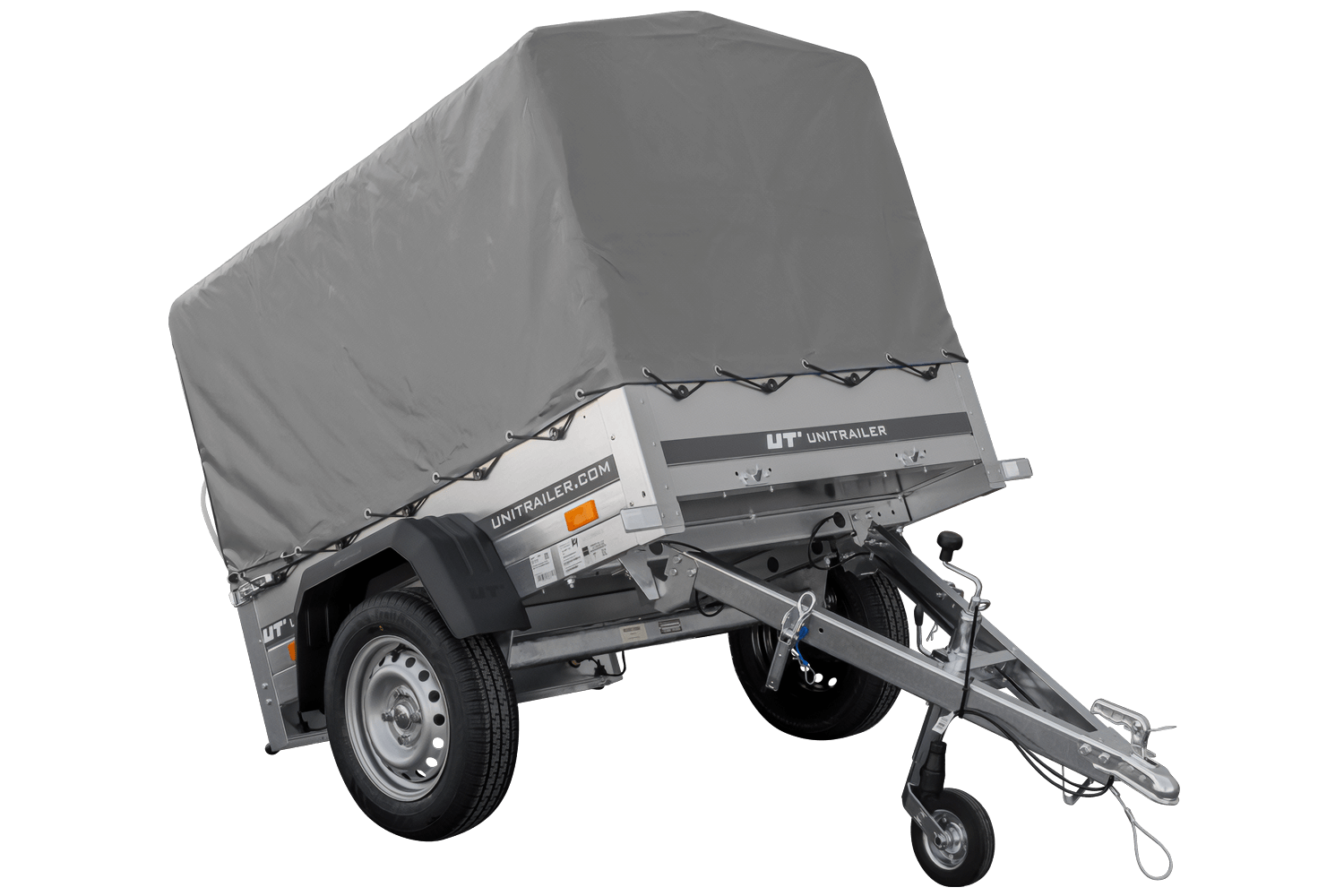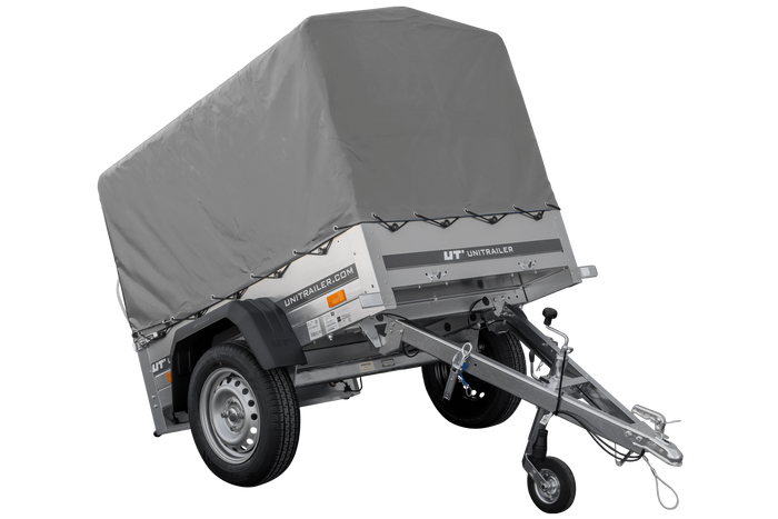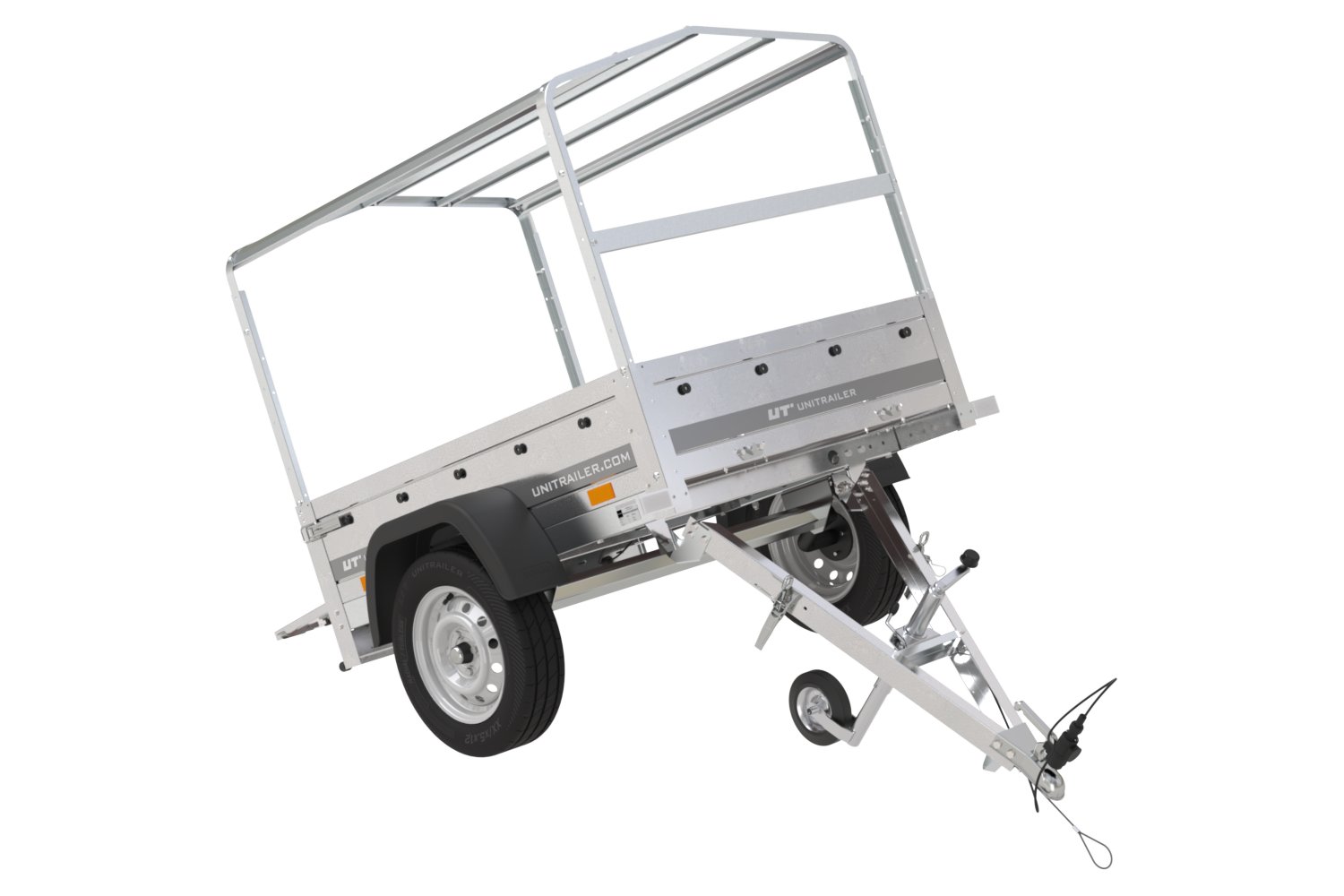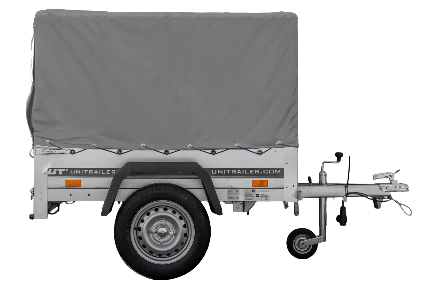 Remorque bachée avec arceau, caisse basculante de la marque UNITRAILER, modèle GARDEN TRAILER 150 KIPP. C'est une remorque petite, idéale pour usage quotidien. La bâche avec armature la rendent très pratique pour le transport des marchandises, qui peuvent être facilement chargés grâce au timon pliable et ridelle arrière ouvrante. Une remorque très solide anti-corrosion, en acier galvanisé. Elle est idéale pour votre maison car elle peut être placée sur la ridelle arrière, ce qui permet de son stockage vertical dans votre maison ou à côté du garage.
