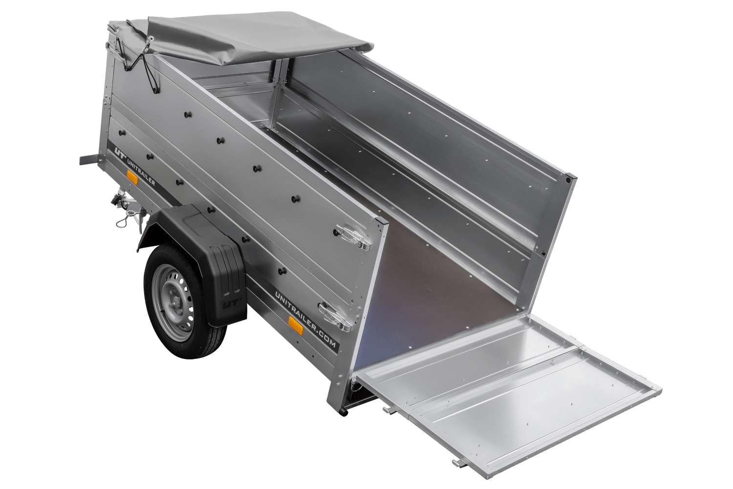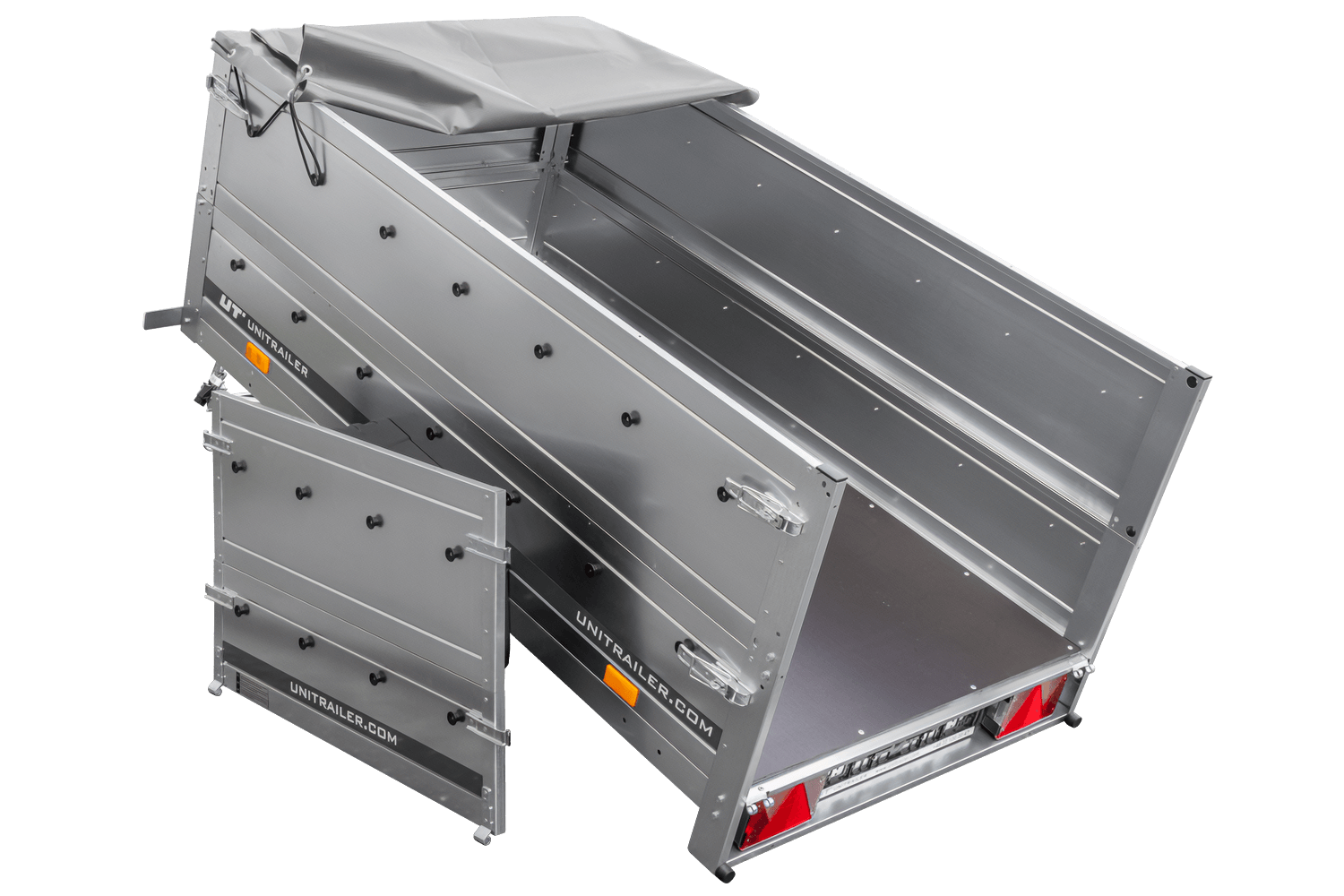 Notre grande remorque à benne basculante est livrée directement à votre maison. Vous n'avez pas à vous inquiéter de devoir monter la remorque, parce que la remorque est entièrement assemblée par nous et prête à être utilisée dès l'instant où vous la recevez. En outre, la remorque est fournie avec tous les documents nécessaires comme la facture TVA, certificat d'autorisation et homologation. Les remorques UNITRAILER se caractérisent par une très grande durabilité avec un service de garantie de 2 ans dont vous pouvez profiter dans plus de 150 sites dans l'ensemble de l'Europe.