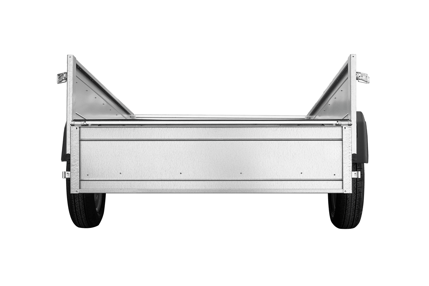 Garden Trailer 230 a une planche arrière ouvrante. Cela rend le chargement et le déchargement extrêmement faciles. Il est également possible de transporter des marchandises longues ou des matériaux avec la planche ouverte ou démontée. Il suffit de le retirer des crochets et on peut transporter divers types de tuyaux, bois, contreplaqué et autres objets longs !