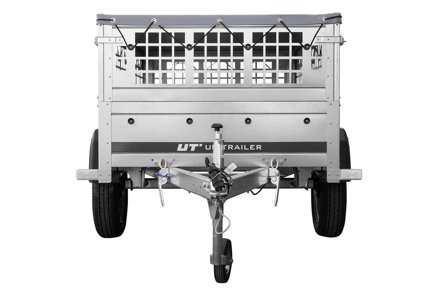 Remorque grillagée 200x106 avec bâche plate grise, ridelles grillagées et roue jockey - Garden Trailer 200 KIPP