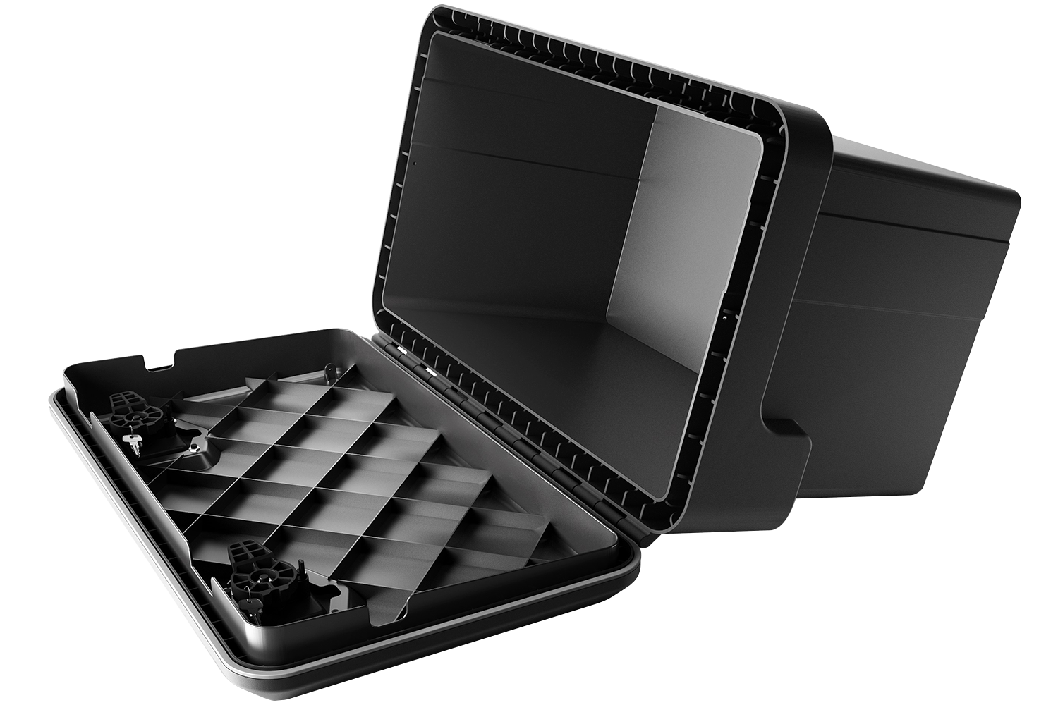 La boîte est fabriquée en polypropylène et en nylon de haute qualité, renforcés par des nervures, ce qui augmente sa durabilité et sa résistance aux dommages mécaniques. Le matériau offre une protection exceptionnelle contre le feu, l'eau, la poussière, le carburant, les rayons UV et les températures extrêmes, ce qui en fait une solution idéale pour une utilisation intensive dans des conditions difficiles. Le couvercle de la boîte est équipé d'un joint en caoutchouc qui assure une étanchéité totale, empêchant l'eau et la poussière de pénétrer à l'intérieur. Cette conception protège efficacement les outils et équipements stockés contre les agressions extérieures néfastes, ce qui est particulièrement important en cas d'utilisation intensive sur des chantiers ou dans des conditions météorologiques difficiles.