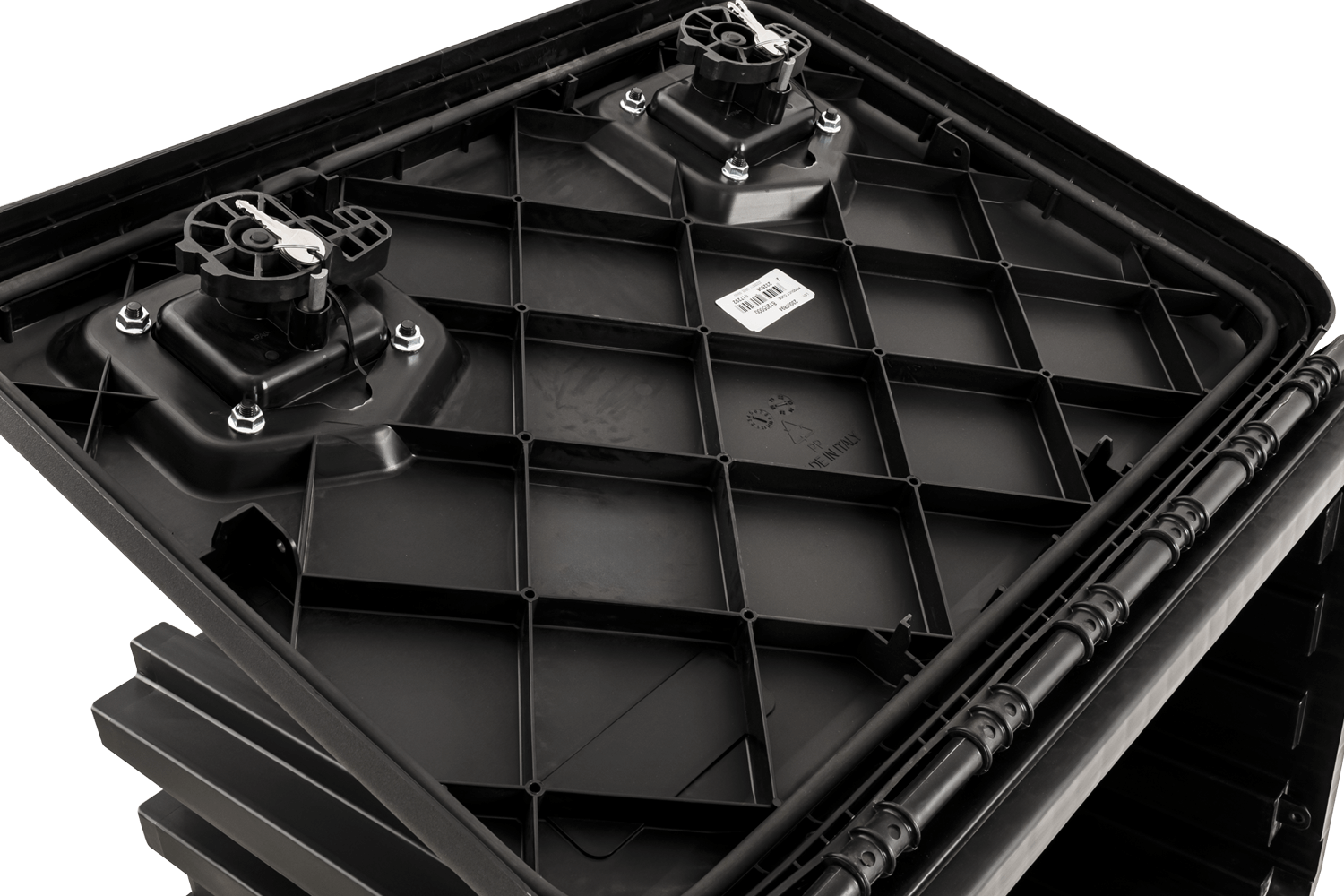 La boîte est fabriquée en polypropylène et en nylon de haute qualité, renforcés par des nervures, ce qui augmente sa durabilité et sa résistance aux dommages mécaniques. Le matériau offre une protection exceptionnelle contre le feu, l'eau, la poussière, le carburant, les rayons UV et les températures extrêmes, ce qui en fait une solution idéale pour une utilisation intensive dans des conditions difficiles. Le couvercle de la boîte est équipé d'un joint en caoutchouc qui assure une étanchéité totale, empêchant l'eau et la poussière de pénétrer à l'intérieur. Cette conception protège efficacement les outils et équipements stockés contre les agressions extérieures néfastes, ce qui est particulièrement important en cas d'utilisation intensive sur des chantiers ou dans des conditions météorologiques difficiles.