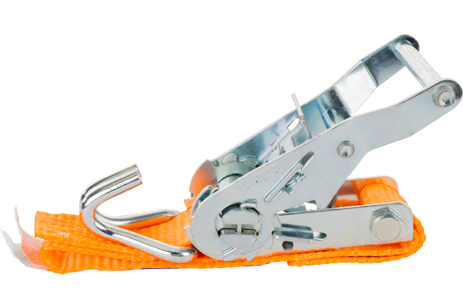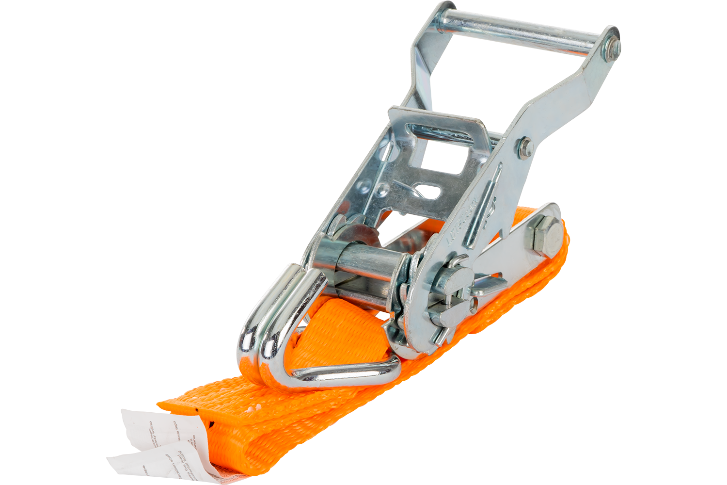 La sangle à cliquet orange UNITRAILER se compose de deux parties : une partie courte avec cliquet et crochet, et une partie longue avec sangle et crochet. Sa longueur totale, sangle et boucle comprises, est de 4 mètres , ce qui est suffisant pour de nombreuses applications de transport. D'une largeur de 25 mm, elle offre une surface de serrage optimale. Sa résistance à la traction de 1 tonne (1 000 daN) permet un arrimage sûr et un arrimage stable du chargement pendant le transport.