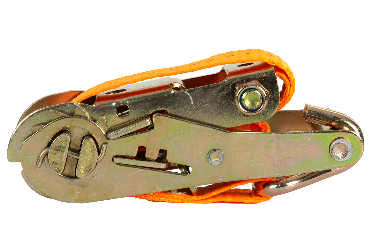 La sangle à cliquet orange UNITRAILER se compose de deux parties : une partie courte avec cliquet et crochet, et une partie longue avec sangle et crochet. Sa longueur totale, sangle et boucle comprises, est de 8 mètres , ce qui est suffisant pour de nombreuses applications de transport. D'une largeur de 25 mm, elle offre une surface de serrage optimale. Sa résistance à la traction de 1 tonne (1 000 daN) permet un arrimage sûr et un arrimage stable du chargement pendant le transport.