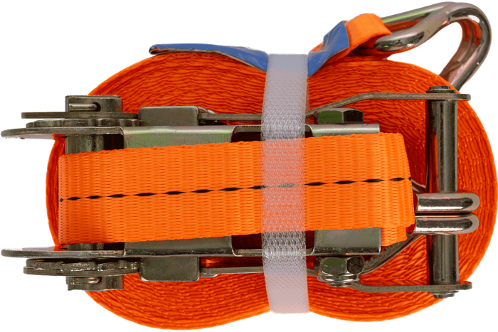 La sangle à cliquet orange UNITRAILER se compose de deux parties : une partie courte avec cliquet et crochet, et une partie longue avec sangle et crochet. Sa longueur totale, sangle et boucle comprises, est de 10 mètres , ce qui est suffisant pour de nombreuses applications de transport. D'une largeur de 25 mm, elle offre une surface de serrage optimale. Sa résistance à la traction de 1 tonne (1 000 daN) permet un arrimage sûr et un arrimage stable du chargement pendant le transport.