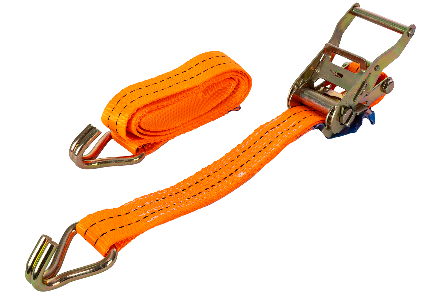 La sangle de transport orange UNITRAILER avec tendeur est composée de deux parties : une plus courte avec un tendeur (c'est-à-dire un hochet) et un crochet et une plus longue avec une sangle se terminant également par un crochet. La longueur totale de la sangle, y compris la sangle et la boucle, est de 2 mètres, offrant une longueur adéquate pour une variété d'applications de transport. La largeur de la sangle de 35 mm offre une surface de pression optimale. La sangle a une résistance de 2 tonnes (2000 daN), ce qui permet une fixation sûre et une sécurisation stable de la charge pendant le transport.