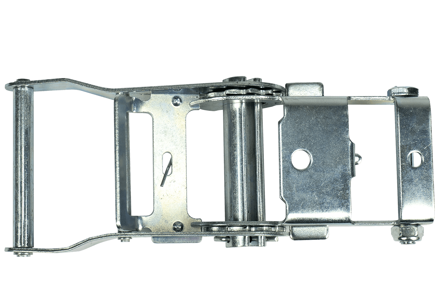 - Tendeur de haute qualité pour sangles d'arrimage de 50 mm. Il permet une sécurisation sûre et efficace de la charge pendant le transport.