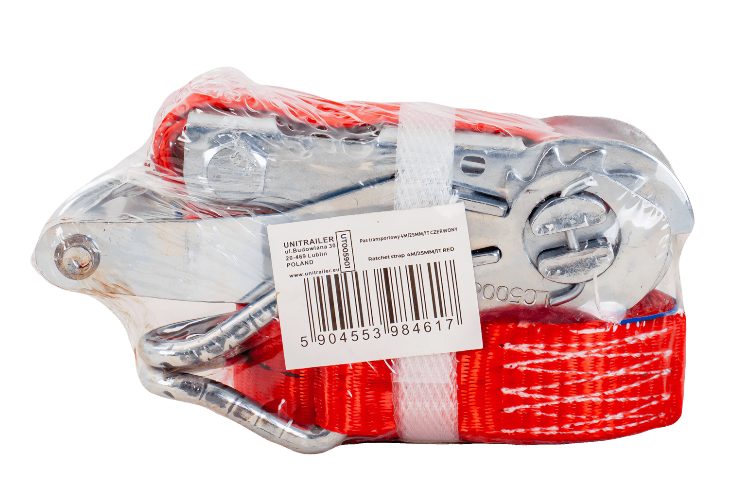 - La sangle de transport rouge UNITRAILER, d'une résistance de 1 tonne, garantit une fixation et une sécurisation sûres de la charge pendant le transport. Une sangle de 4 mètres de long et 25 mm de large offre une surface de pression optimale.