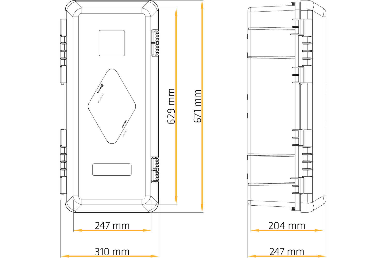 Le coffre à extincteur DAKEN ADAMANT 82000 aux dimensions de 671 mm de haut, 310 mm de large et 247 mm de profondeur est une solution pratique et fiable pour stocker un extincteur de 6 kg dans les véhicules et remorques. La boîte noire est équipée de deux supports pour extincteur d'un diamètre de 150-170 mm et d'une fenêtre d'inspection, qui permet de vérifier rapidement la présence et l'état de l'extincteur sans avoir à l'ouvrir, ce qui facilite une inspection régulière et garantit une utilisation pratique.