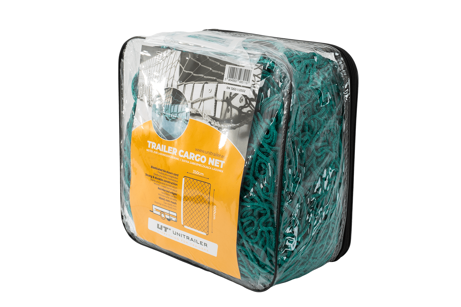 - Le filet de transport aux dimensions de 350 x 500 cm est un dispositif d'arrimage durable du chargement sur la remorque. Fabriqué en fibre solide, il possède des bords renforcés et un cordon en caoutchouc flexible pour une installation facile.