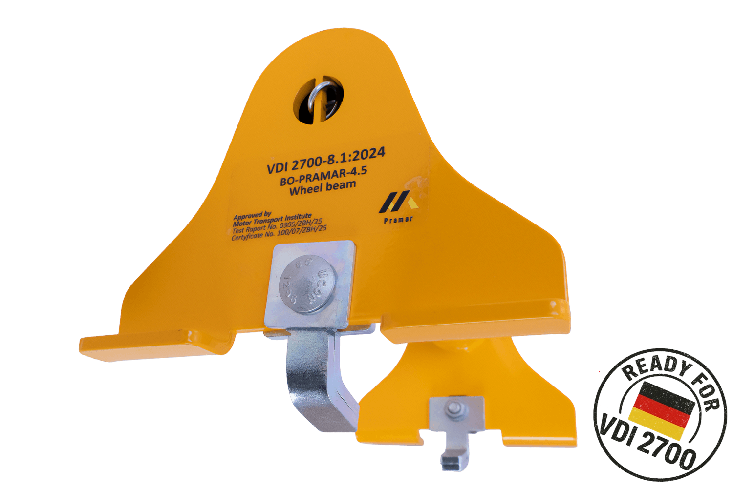 Le PRAMAR Radstopper est certifié conforme à la norme VDI 2700 pour la sécurisation des véhicules jusqu'à 4,5 tonnes, ce qui confirme sa sécurité et sa qualité, conformément aux normes européennes de sécurisation des chargements. La norme VDI 2700 fournit des directives pour la sécurisation adéquate des véhicules sur les plateformes de transport. Sa conformité à ses exigences signifie que le produit a été testé pour sa résistance, sa stabilité et sa fonctionnalité en conditions routières. Les utilisateurs ont ainsi l'assurance que le cadenas répond aux exigences strictes en matière de sécurisation des véhicules transportés, tant pour les applications commerciales que résidentielles.