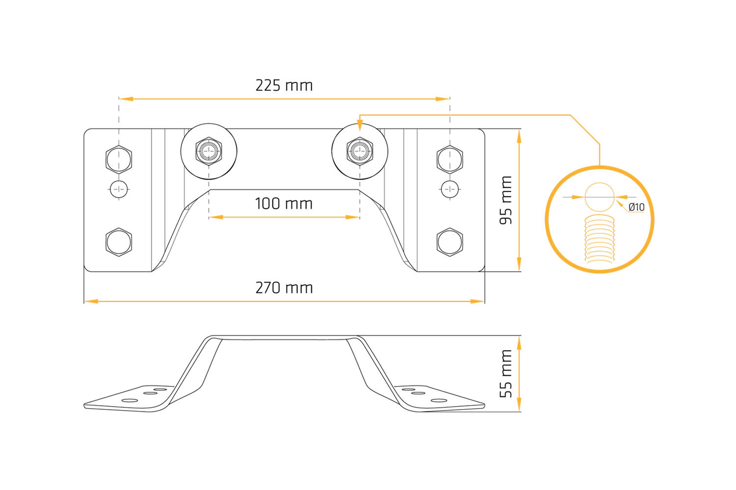 Support de roue de secours pratique, conçu pour être monté sur le côté des remorques de la série Unitrailer Garden Trailer KIPP. Il permet une fixation stable et sûre d'une roue 155/70 R13 4x100, offrant un accès rapide à la roue de secours en cas de panne sur la route. Ses dimensions de 270 × 95 mm facilitent l'installation et garantissent la compatibilité avec la structure latérale.