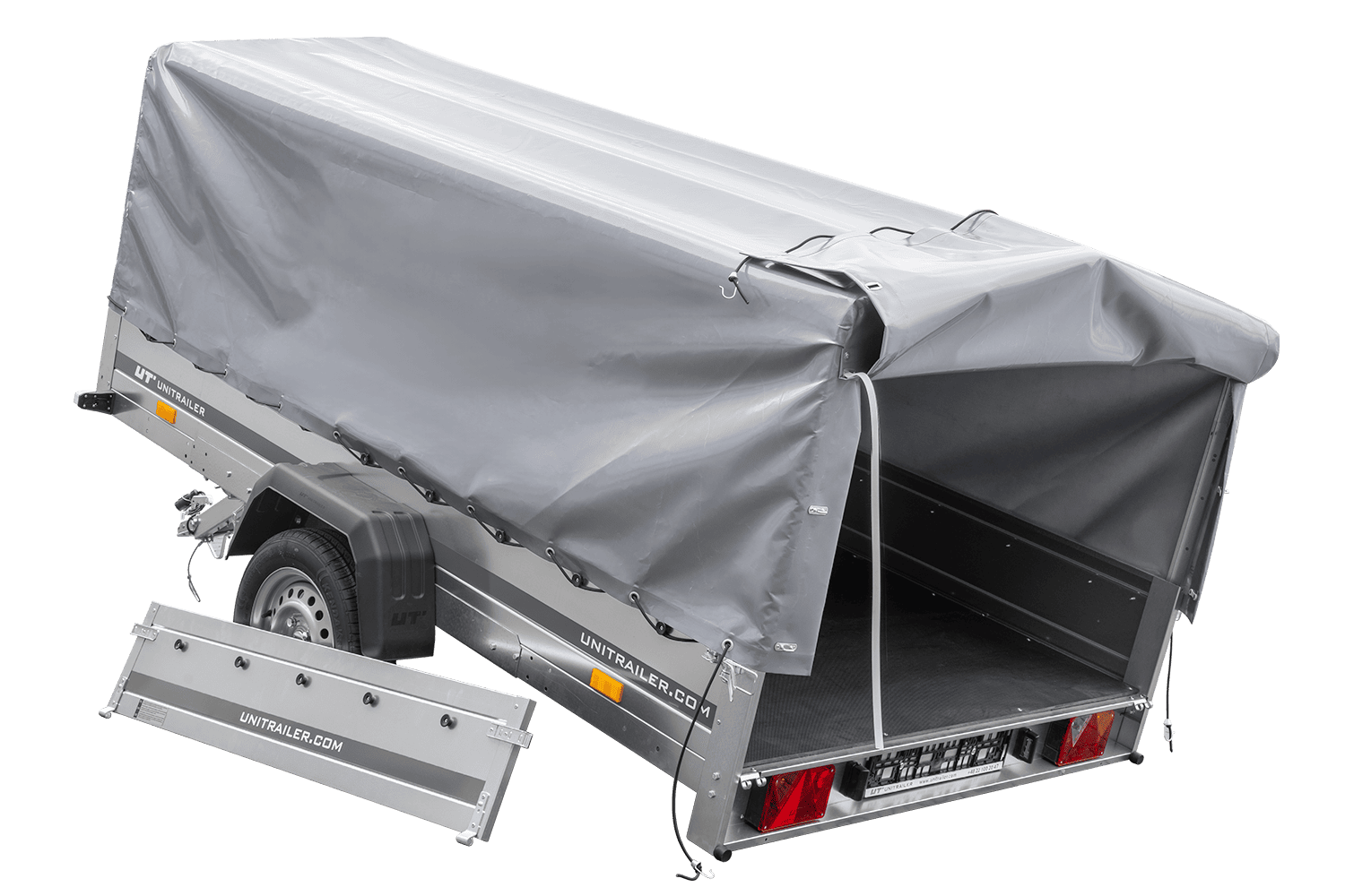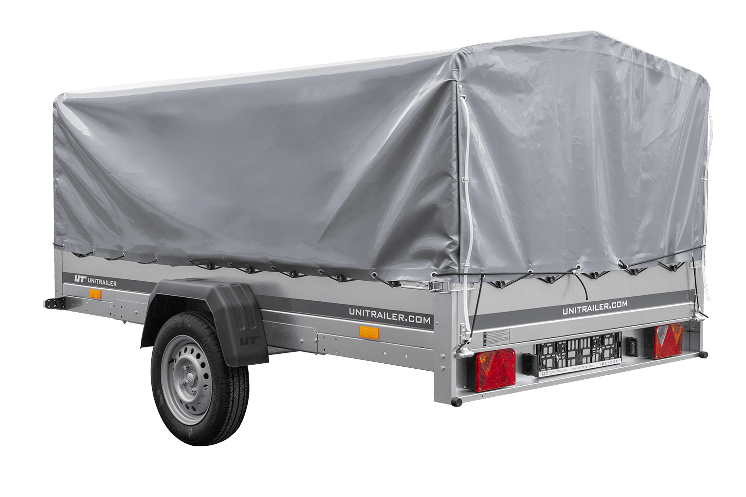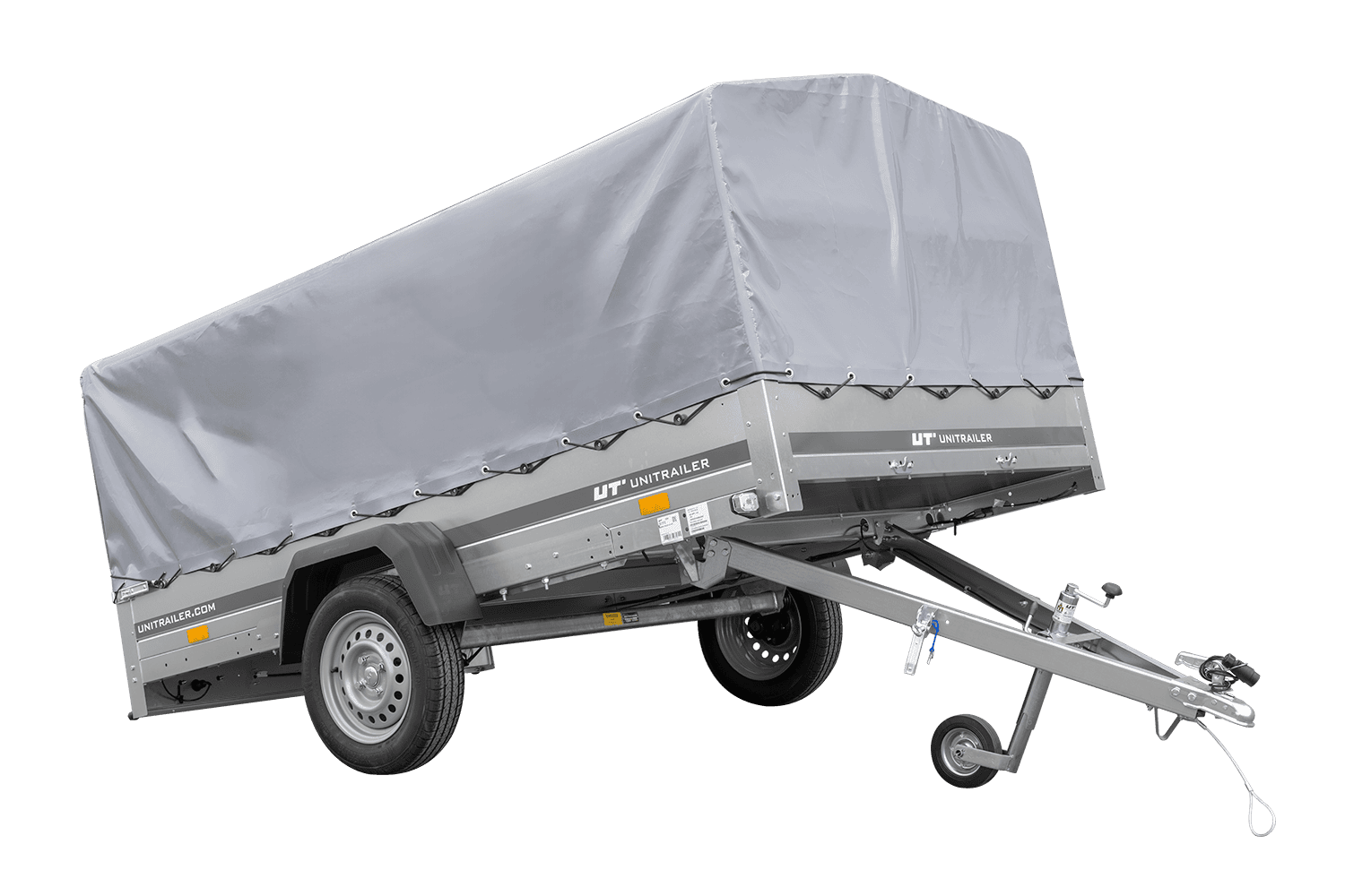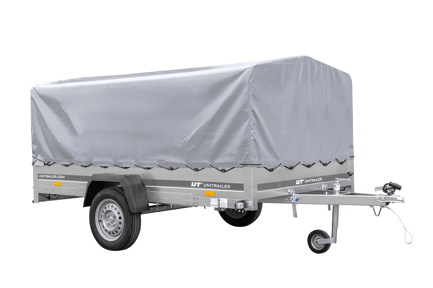 - Remorque voiture UNITRAILER Garden 265 Kipp, largeur 150 cm, avec châssis, arceau H-800 et bâche grise. Une remorque large signifie plus de possibilités de transport pour vous ou votre entreprise.