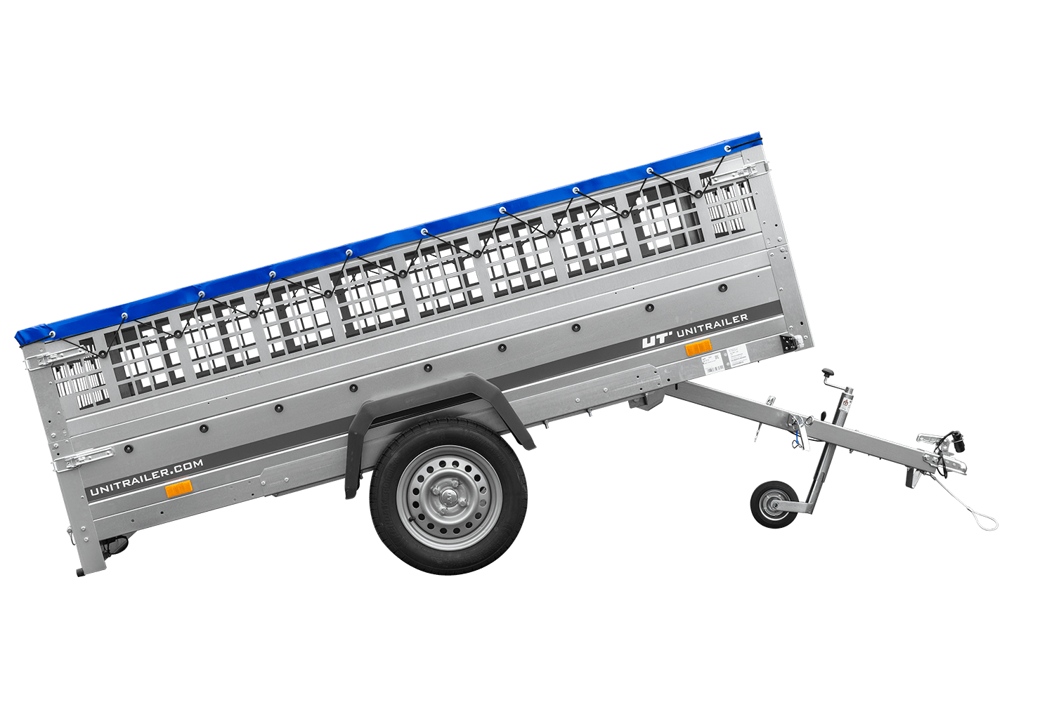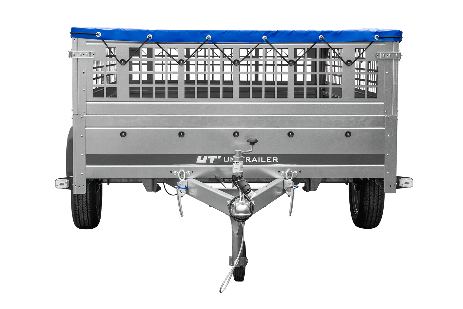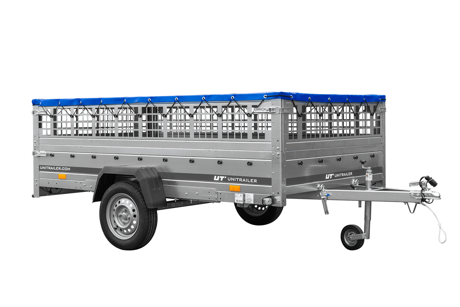 Remorque légère 264x150 UNITRAILER GARDEN 265 KIPP avec ridelles grillagées, châssis H-0 et bâche bleue