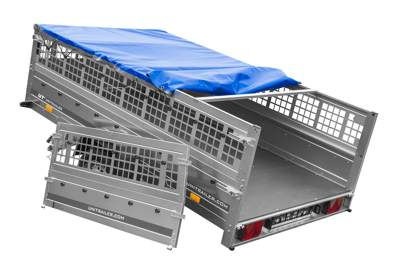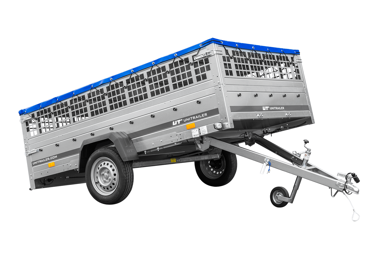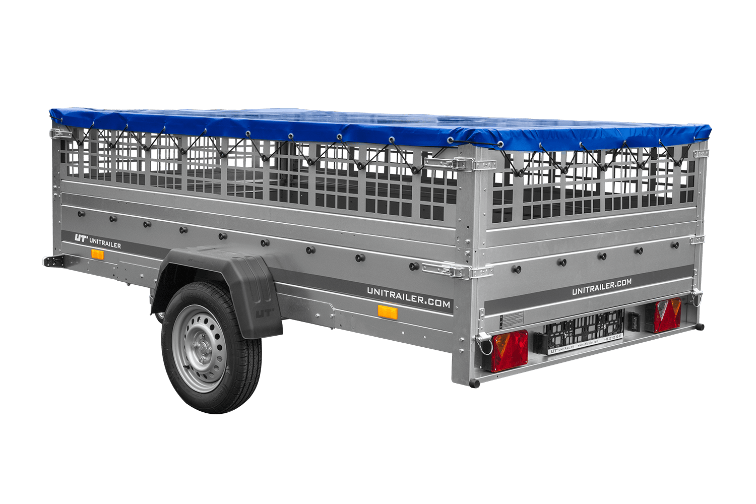 Remorque légère 264x150 UNITRAILER GARDEN 265 KIPP avec ridelles grillagées, châssis H-0 et bâche bleue