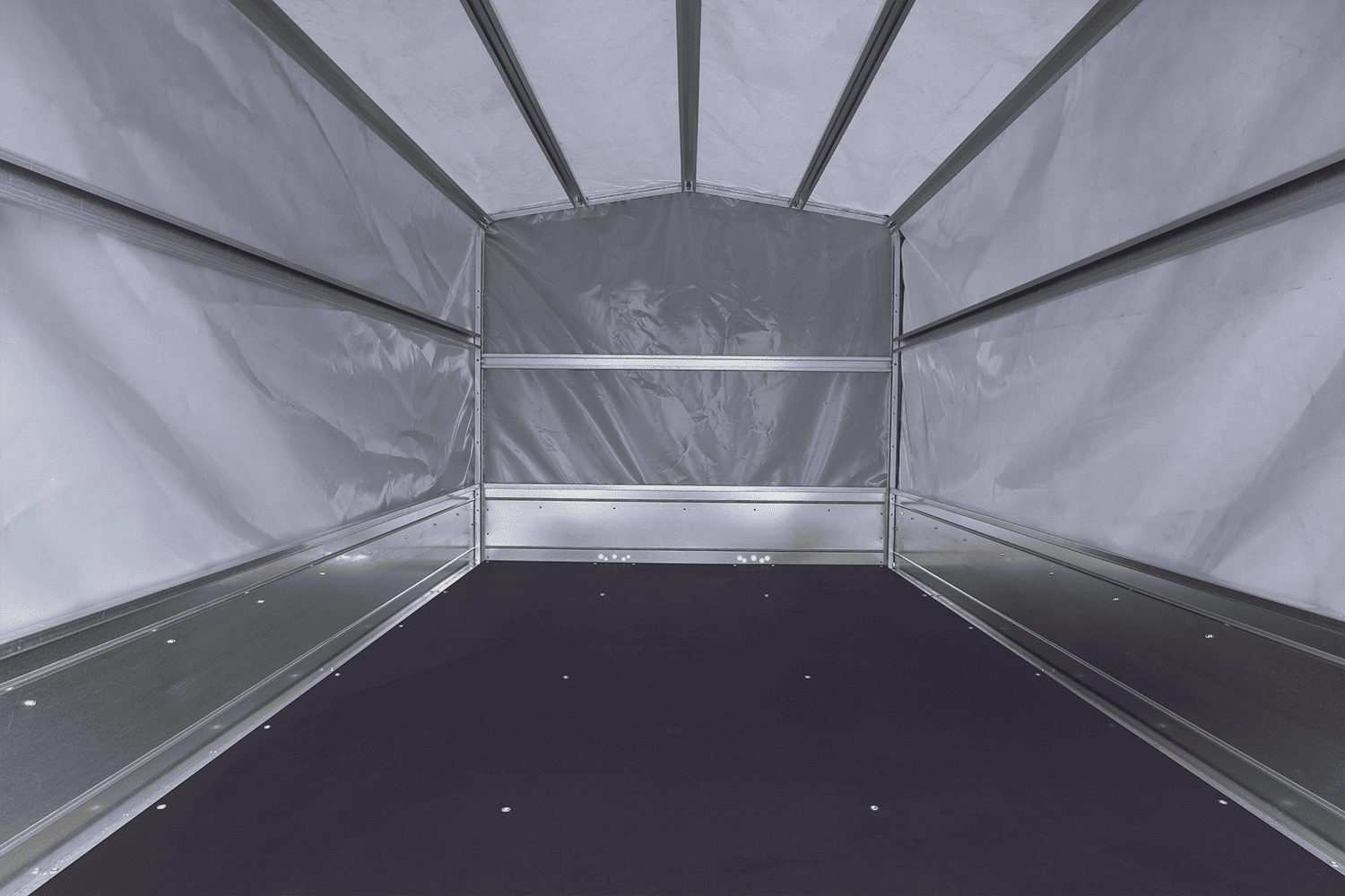 - CORPS - plancher en contreplaqué de haute qualité, imperméable et antidérapant, d'une épaisseur de 9 mm. Dimensions de la zone de transport : 2643 mm de long x 1499 mm de large.