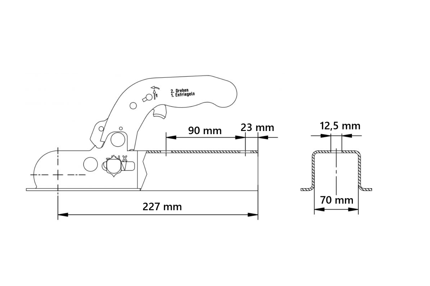 - L'attelage à boule K7.5-M de KNOTT est conçu pour les remorques pesant jusqu'à 750 kg. Monté sur un timon carré de 70 mm, il permet de relier en toute sécurité la remorque au véhicule tracteur.